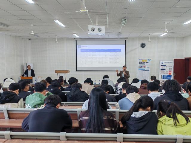 此次就业宣讲着重对计算机行业的招聘需求、行业趋势以及关键知识技能的储备等方面进行讲解。徐明分别以“就业形势”“成长路线及发展前景”“合作企业及录用条件”“成功案例”四个部分为同学们进行讲解分析,并结合历年数据和相关专业信息,为同学们分享信息技术行业的最新动态。