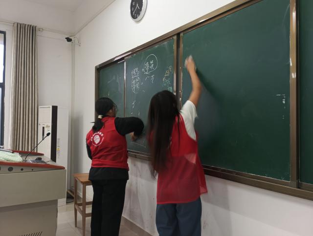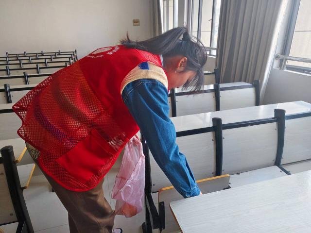 活动中,志愿者们分工明确,干劲十足。有的同学熟练地拿着扫帚清扫地面,仔细清理每一个角落。有的同学用抹布认真擦拭黑板和讲台,将粉笔灰和污渍彻底清除,让教学设施重新焕发光亮。大家齐心协力,用双手打造清爽舒适的校园环境。