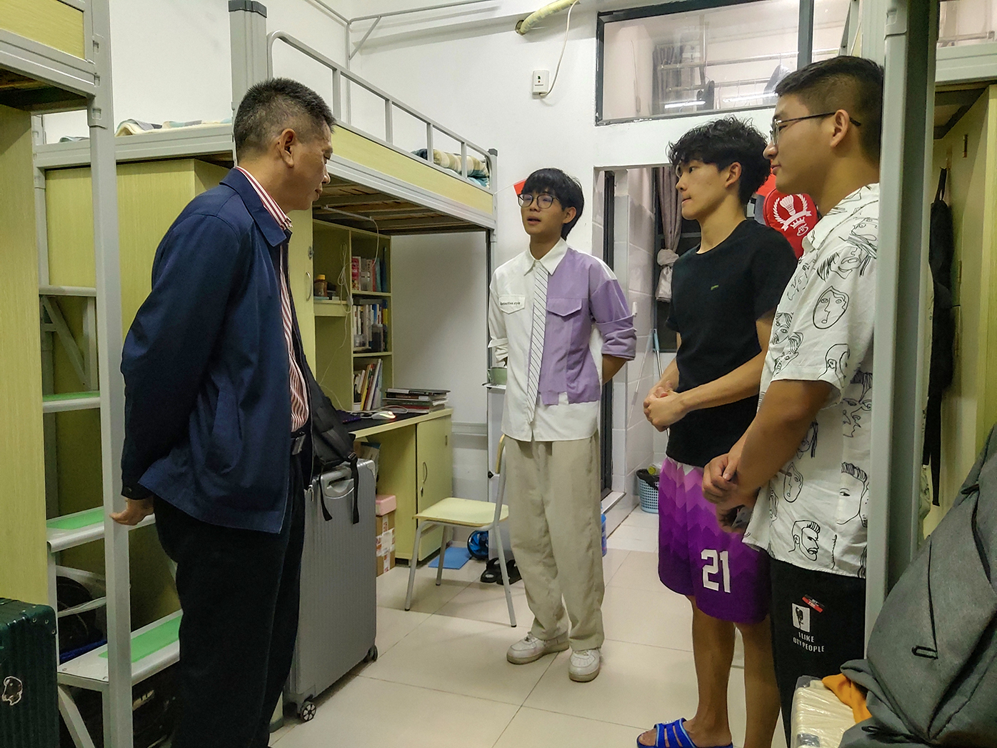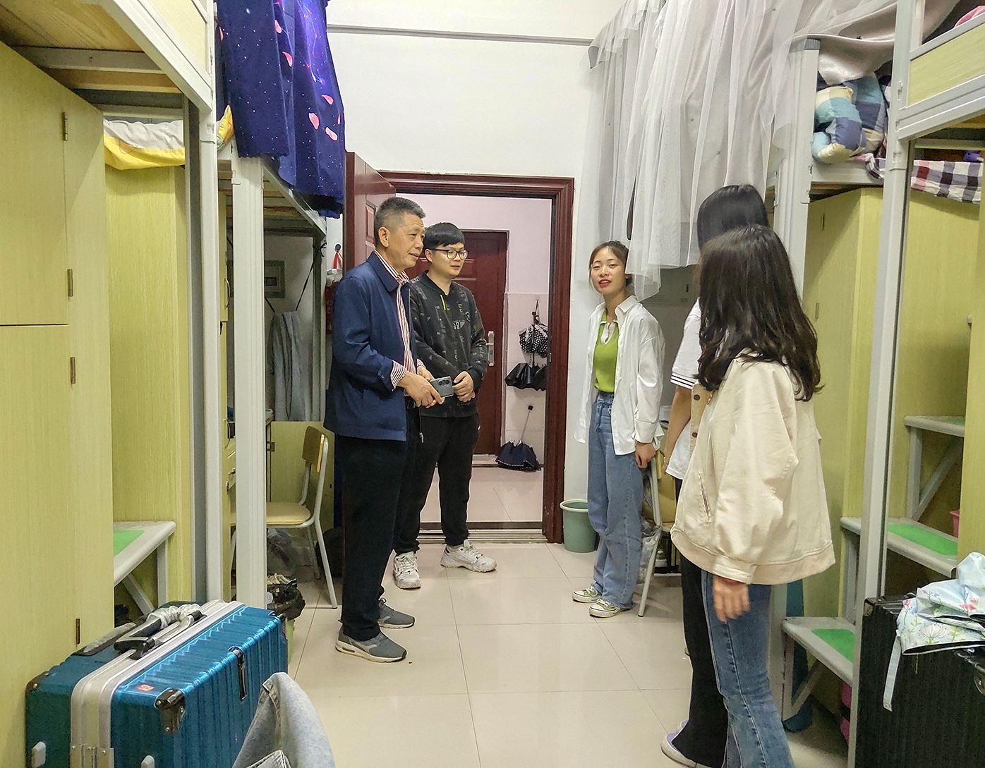 4月21日晚,院党委书记郑志红深入计算机系计科2001班学生宿舍,检查疫情防控工作,了解学生在校学习和生活状态,为学生送去关心和问候。计算机系相关老师陪同看望。