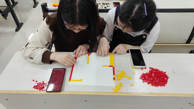 活动开始前,负责人细心地向同学们介绍本次活动的主要任务并向同学们演示如何拼制乐高积木手工作品。教学结束后,同学们领取材料坐在座位上全神贯注地拼着积木,沉浸其中。在大家的共同努力下,三十余名同学历时五小时,终于将“农商青年”乐高图案拼接完成,它象征着我们商院学子永远朝气蓬勃,永远青春正能量。期间,钱萍来到教室参观活动,深刻感受到同学们参与活动的高度热情,对同学们积极参与的行为予以充分的肯定和鼓励,让同学们倍感温暖。
