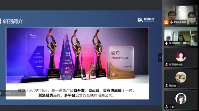 为深入贯彻落实党中央、国务院关于“稳就业”“保就业”决策部署,根据教育部和江西省教育厅有关通知的精神,按照《江西农业大学南昌商学院访企拓岗促就业专项行动实施方案》,5月19日下午,计算机系同南昌帕羽科技有限公司开展线上“访企拓岗促就业”校企合作交流会。副院长侯英梅、计算机系系主任马朝圣、计算机系党总支书记于盈、党总支副书记黄舒文、计算机系办公室主任陈选德,帕羽人力资源部招聘经理桂佳、人事专员胡彦成参加本次会议。