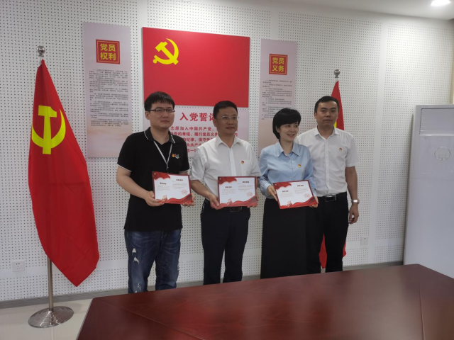 孙冰同志为5月份入党的同志颁发政治生日贺卡。