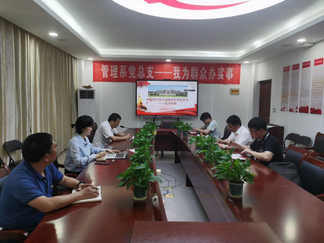 5月30日,管理系教工支部于明辨楼KN301开展专题学习会暨党员5月份“政治生日”党日活动。全体教工党员通过线上线下的方式参加。