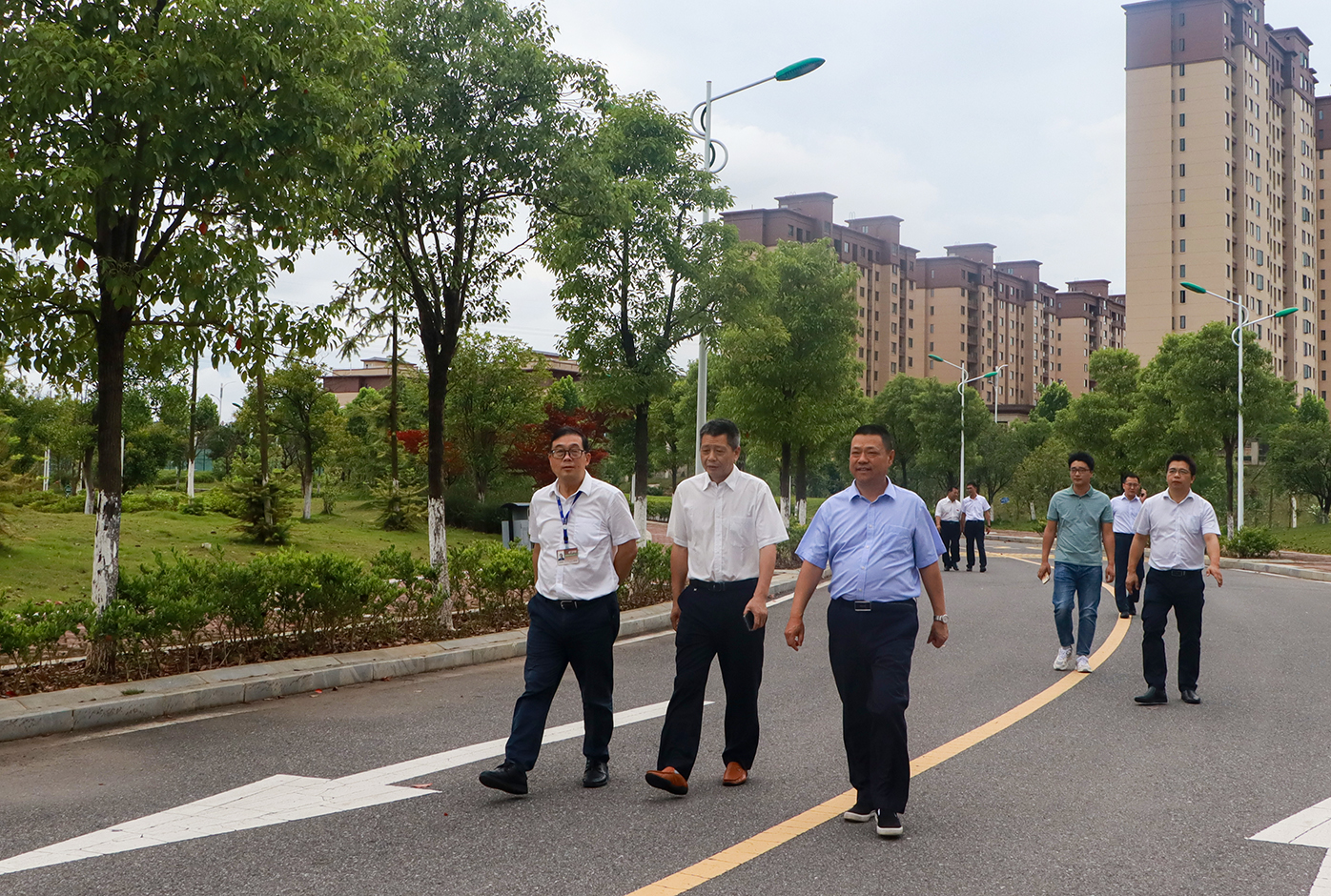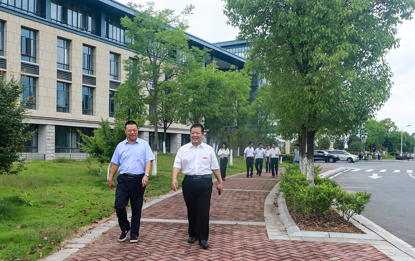 何后军向程保忠一行详细介绍了学院办学历史、校园规划和校园建设情况,并带领游览了无双亭、云影湖等地。