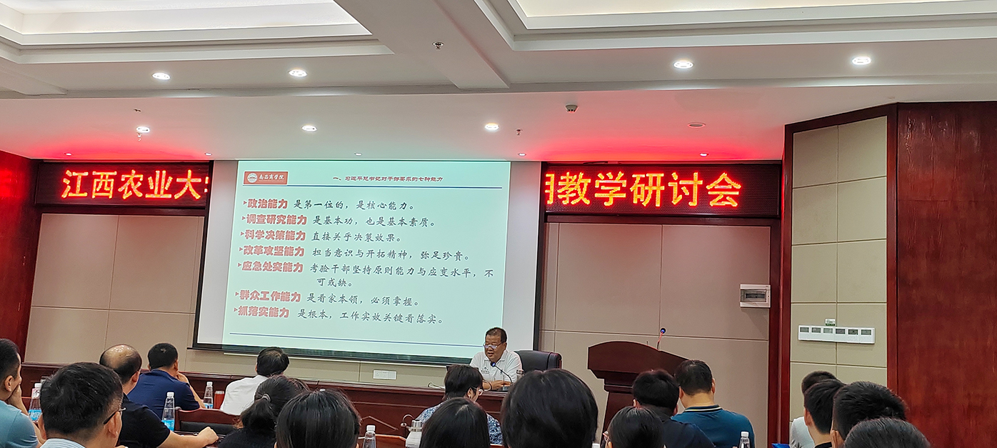 院长何后军教授做了题为《如何提升履职能力》的专题报告,阐述了高校领导干部要具备的七种能力,他指出,新时代高校领导干部要在提升学习力、政治力、业务力、协调力、组织力、创新力、约束力上下功夫。此外,他还对专业负责人应具备的任职条件及应履行的职责提出了要求,强调要进一步加强专业负责人的选拔、考核和管理,充分发挥专业负责人的带头与骨干作用,加强专业内涵建设。