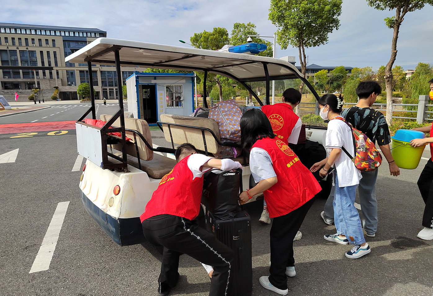 此外,众多迎新志愿者穿行于校园内,为需要帮助的新生提供迎新咨询、搬运行李、报到引导等志愿服务,成为校园内一道靓丽的风景线。