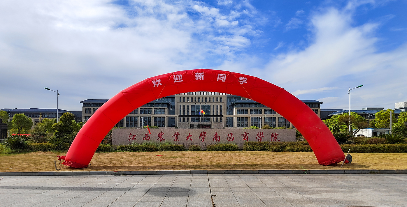 体育馆外飘扬的飘带上“望江南,一生无悔赴农商;相见欢,今生有幸聚共青”两联格外醒目的标语欢迎着来自五湖四海的新生们。体育馆内,各系工作人员引导新生进行入学登记、校园卡办理等报到工作,并由志愿者带领新生前往宿舍。
