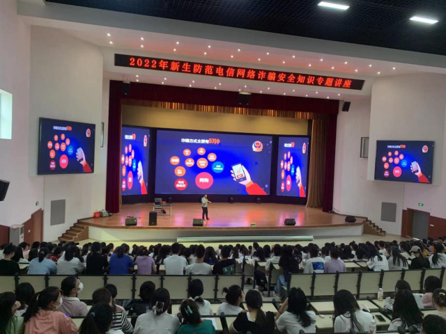 为做好开学季防范电信网络诈骗宣传,切实提高在校新生识骗、防骗能力,9月21日下午在笃行楼报告厅开展了2022年专升本新生防范电信网络诈骗安全知识专题讲座,本次讲座特邀共青城市公安局反诈中心杨洁警官前来授课,共计500余名同学参加。