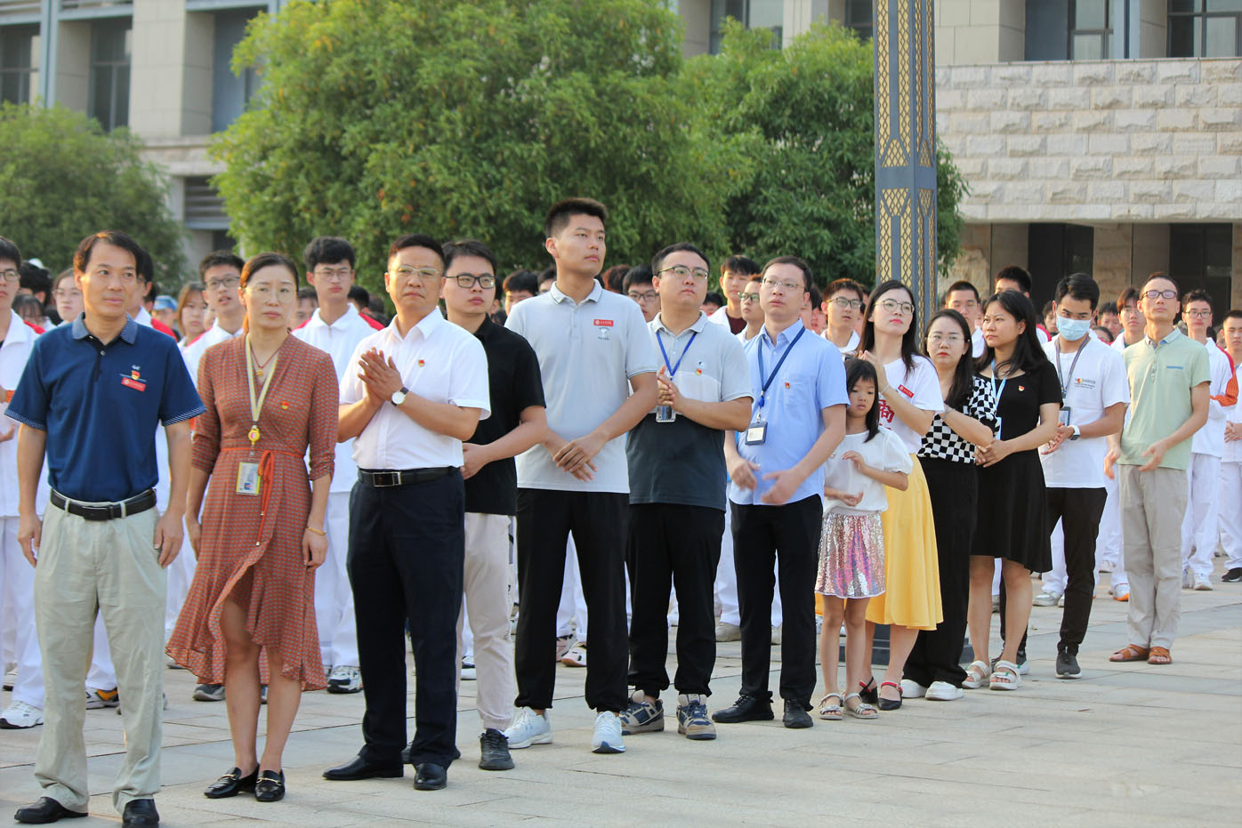 仪式结束后,国旗护卫队成员站在“青春告白祖国”的海报桁架下,组成整齐划一的方形阵列,共同喊出“红旗飘飘迎风展,火树银花不夜天”的响亮口号,祝福伟大的祖国73周年华诞。(文/院新闻中心 谢春慧,图/院新闻中心 肖敏、黄楚娟,审核/郭侠)