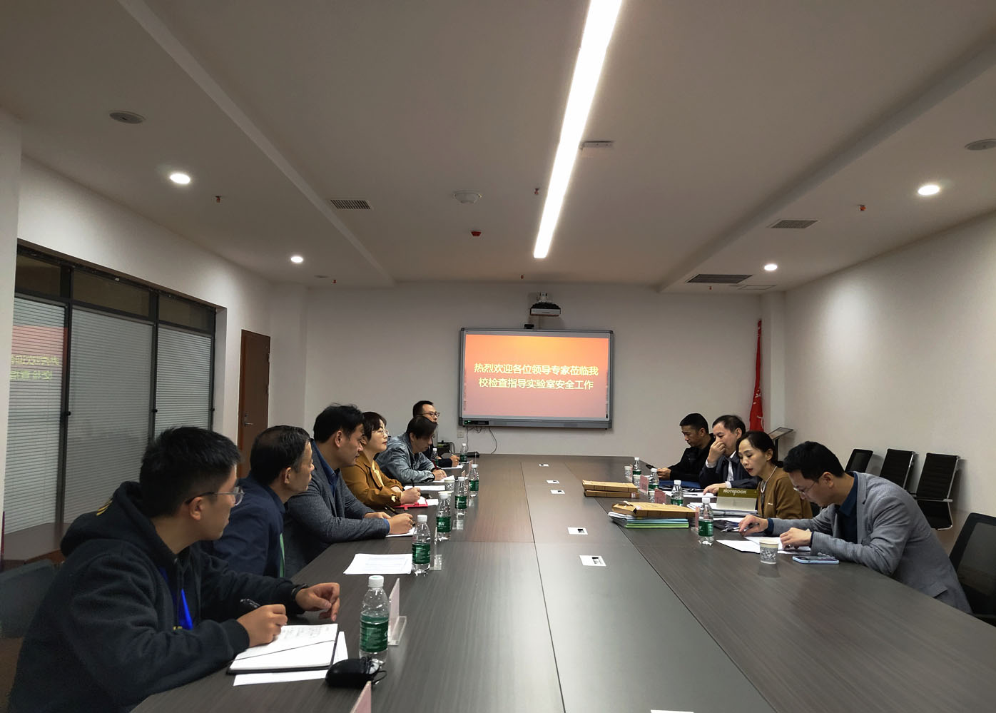 汇报结束后,专家组一行来到学院综合实验大楼进行现场查看,重点关注了消防设施、应急疏散线路与通道、实验室安全信息牌等方面的问题。随后,专家组在会议室集中查阅了实验室安全管理组织体系、规章制度、安全培训演练、检查台账、安全整改等档案资料,重点对实验室安全管理制度、安全培训、开设实验室安全必修课或选修课等材料进行了检查。