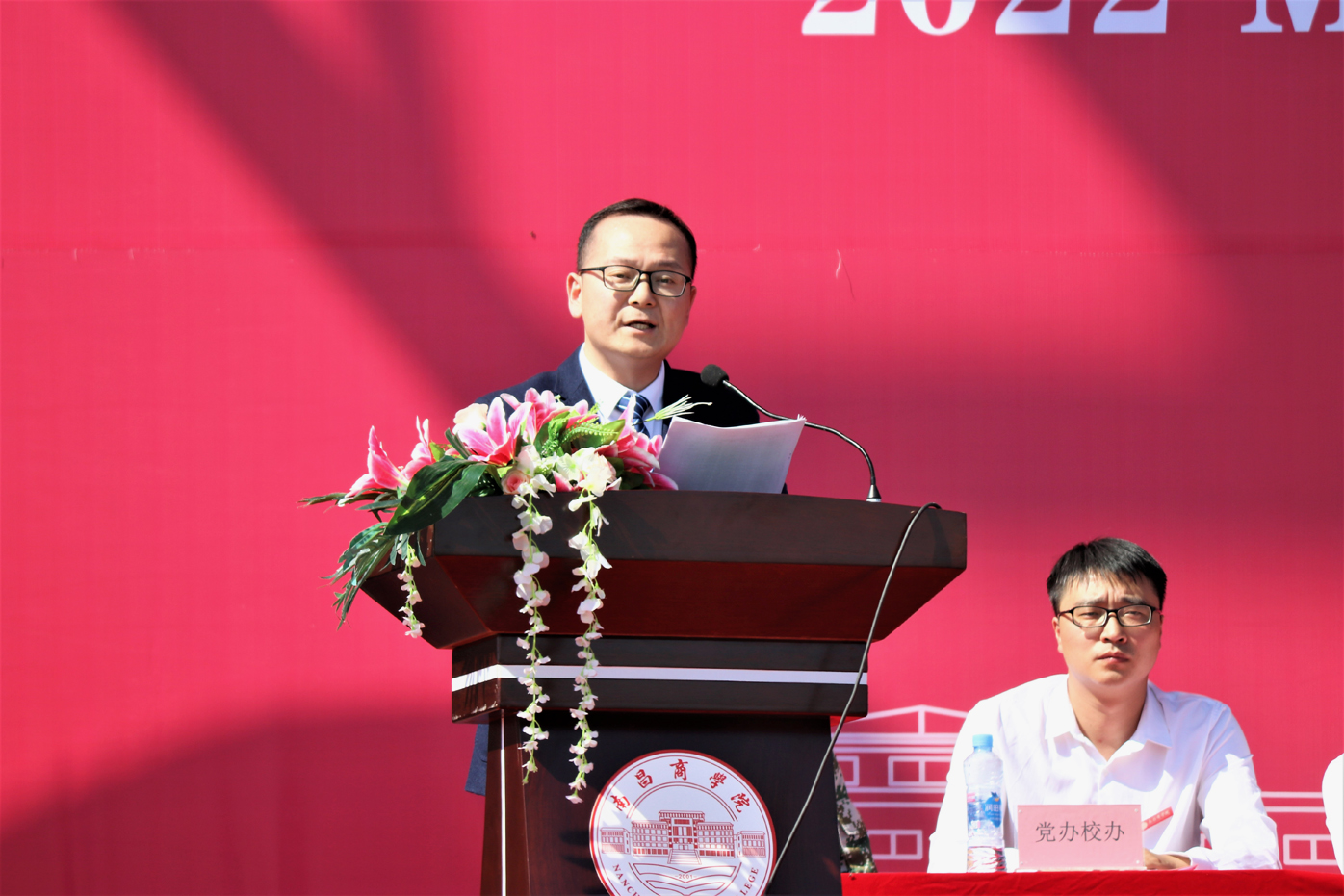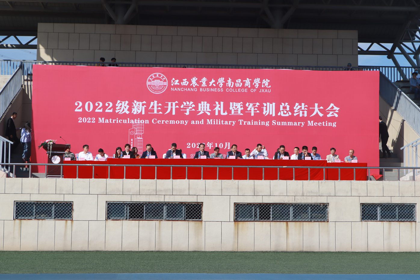 10月21日上午,学院2022级新生军训总结大会在体育场举行。江西农业大学副校长许斌华,院领导何后军、郑志红、杨欢、谭飞、邱波、侯英梅、徐发亮以及各系、各职能部门负责人、新生各班辅导员和2022级全体新生参加。大会由院党委书记郑志红主持。