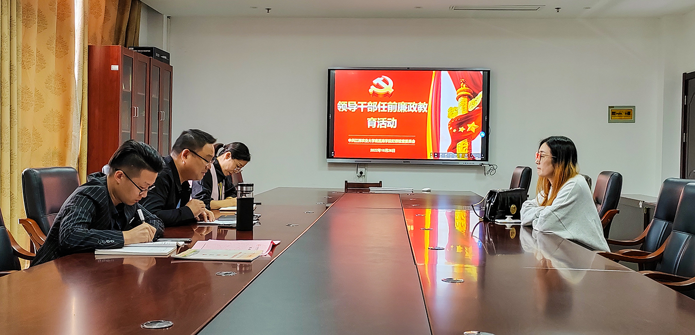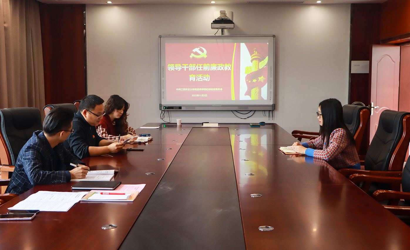 10月26日、11月3日、11月9日,学院纪委共组织8位新任党员领导干部开展了廉政法规知识测试、观看警示教育片、赠送警示案例选编、廉政谈话、签订廉洁履职承诺书、撰写廉政教育心得体会“六位一体”任前廉政教育活动。纪委书记邱波参加廉政谈话活动。