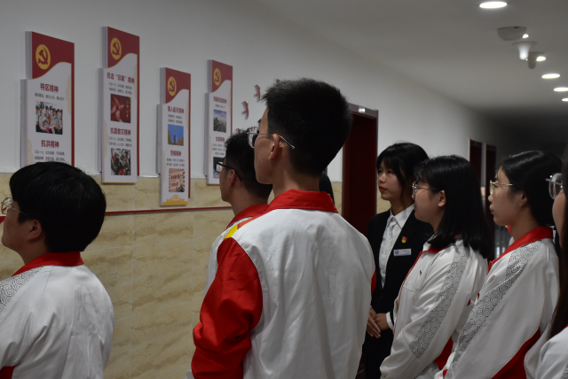 在讨论会结束后,大家参观学习了管理系红色长廊。旅游管理2001班王海梅同学、学生党员朱金铃同学担任主讲,图文并茂的红色长廊生动展现了不同历史时期中国共产党人在长期奋斗中,锤炼出的鲜明政治品格,构建起了中国共产党人精神谱系,历史的荣光川流不息,伟大的精神代代相传。党员发展对象们在红色长廊里,仔细端详着墙壁上的图文,认真聆听中国共产党人的奋斗故事,感怀共产党前辈所经历的峥嵘岁月,感悟前辈们的精神力量。