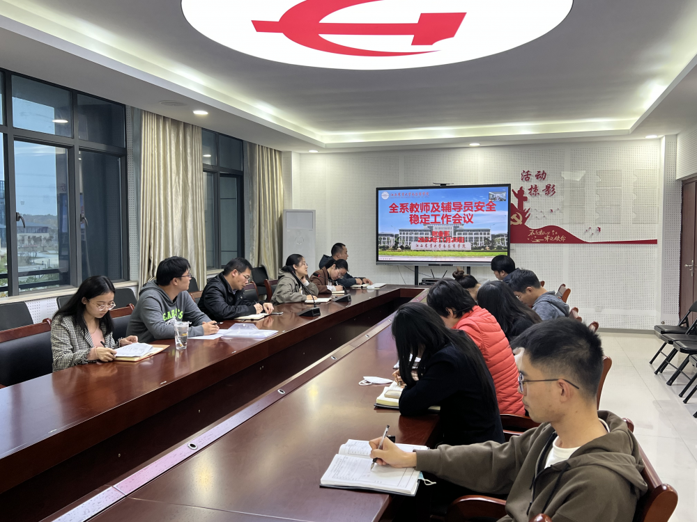 11月28日下午,财会系于明辨楼KN410召开全系教师及辅导员安全稳定工作会议,系主任谌种华、系党总支书记李锐及系全体教师、辅导员通过线上线下结合的方式参加会议。