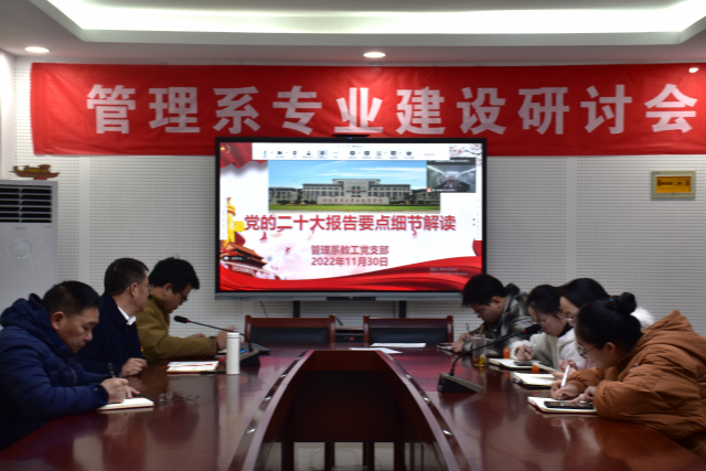 11月30日下午,管理系教工党支部在明辨楼KN301召开党的二十大报告要点细节解读学习会。学习会由教工党支部书记孙冰主持,支部全体党员通过线上、线下的方式参与。