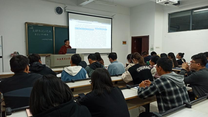 为深入学习贯彻党的二十大精神,准确把握党的二十大精神实质和丰富内涵,11月6日晚,人文与艺术系“思语课堂”在厚德楼A417教室组织开展“党支部书记上党课——学习党的二十大精神”学习活动,此次学习由学生第二党支部书记宫济鸿主讲。宫济鸿结合党的二十大报告,对“三个务必”、近十年来对党和人民事业具有重大现实意义和深远历史意义的三件大事、“六个必须坚持”等内容展开讲解,在讲解过程中,他结合党史、新中国史、改革开放史、社会主义发展史的相关内容,以具体事例展开阐述。他重点对“必须坚持系统观念”进行了阐释,要求青年党员将系统观念贯穿自身学习、工作以及生活上的各个方面,以实践推进创新。