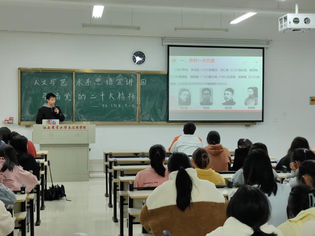 党的二十大是在全党全国各族人民迈上全面建设社会主义现代化国家新征程、向第二个百年奋斗目标进军的关键时刻召开的一次十分重要的大会。为学习宣传党的二十大精神,提高宣讲的深度和广度,人文与艺术系成立“思语宣讲团”,让党的二十大精神在基层落地生根。