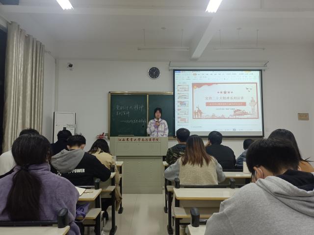 学生第二党支部第二宣讲团成员来到广播电视编导2201班、广播电视编导2202班和广告学2201班,以“艺心向党、砥砺奋发”为主题,通过主题宣讲、视频展示的方式,宣讲党的二十大精神,强化青年学生的理想信念教育。