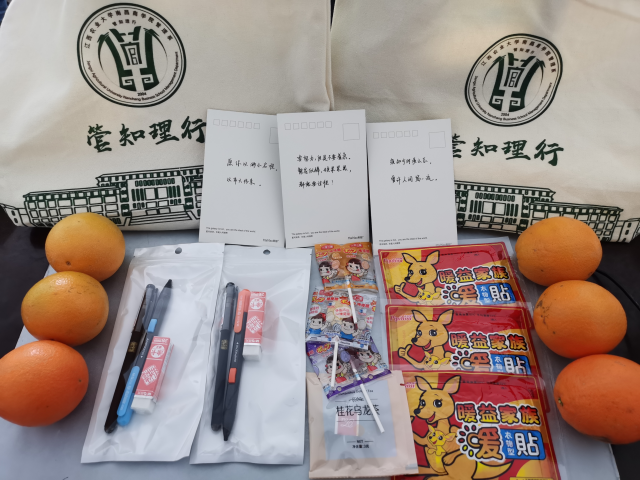 手提袋是管理系专门定制,印有系徽与“管知理行”的系训,手提袋里有糖果、士力架、文具袋、暖手贴,还有寓意“橙功上岸”的脐橙。每个礼包里都装有一张由师生书写的明信片,明信片上为每位考研学子书写了专属个人的祝福话语,诉说着管理系大家庭的温馨和暖意。