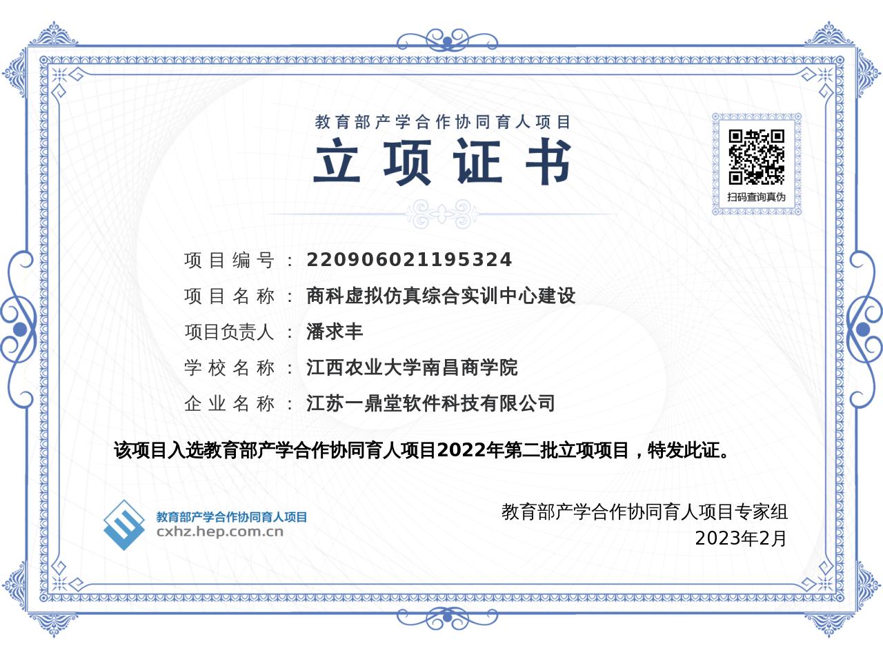 近日,教育部公布了2022年第二批产学合作协同育人项目立项名单,潘求丰副教授团队(成员:祝镇东、杨华玲、张武根、张金梅、武奕廷)申报的《商科虚拟仿真综合实训中心建设》获批立项,这是学院首次获得教育部育人项目立项。