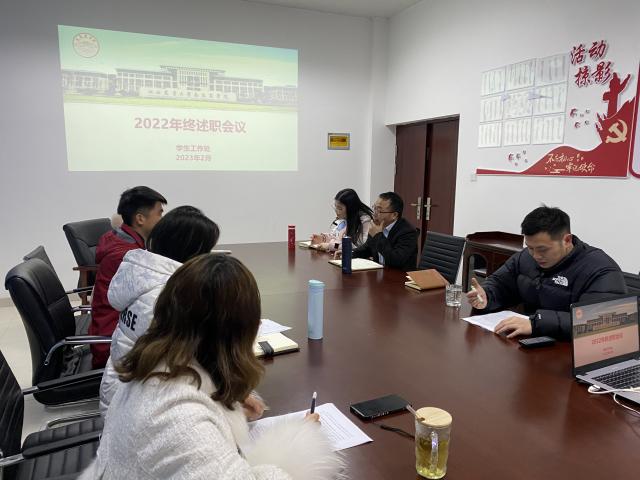 为全面总结过去一年的工作,2月12日,学工处于笃行楼320室召开2022年年终述职会议,部门全体教师参会并作述职报告。