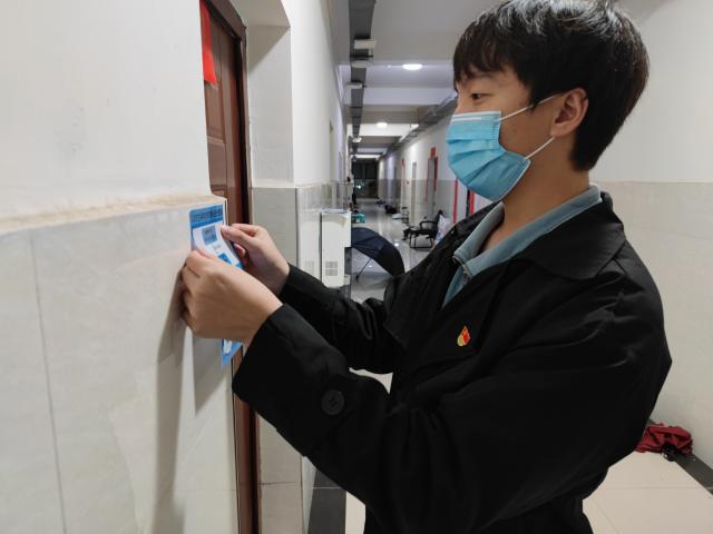 学生党员们深入寝室张贴突发事件应急处理流程图,向同学们积极宣传突发事件的应急处理方法。以便迅速反应、及时上报,有条不紊地开展处理和善后工作。