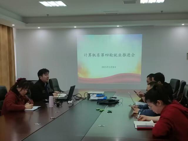 为切实做好2023届毕业生就业工作,充分实现毕业生高质量就业,3月8日,计算机系在明道楼429会议室召开第四轮就业推进会,系党总支书记于盈、学生工作办公室主任余帆及毕业班辅导员参加会议。
