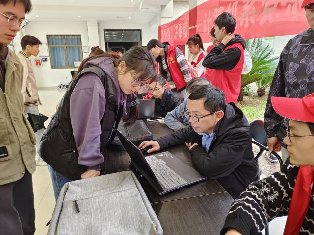此次活动内容主要包括电脑检测维修、除尘、软件安装、系统升级与维护等。活动过程中,不断有同学们拿着无法正常使用的电子产品来寻求帮助,大家送来的电子产品先登记在册,再一一进行测试、分析、维修、安装,计算机系的师生志愿者们干劲十足,积极解决每一个软硬件问题,处理各种电路故障,最后将维修结果登记反馈给同学们。在大家的巧手下,一件件电子产品“重获新生”,党总支的师生志愿者们以扎实的技术和良好的服务态度得到同学们的一致好评。