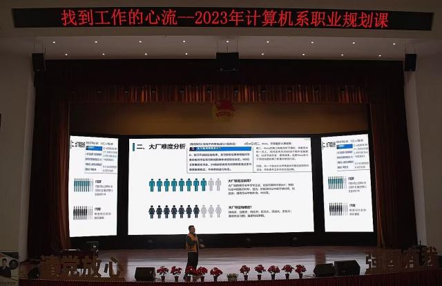 为帮助同学们了解当前就业形势,明确就业目标,转变就业观念,提前做好求职规划。3月22日,计算机系在笃行楼大报告厅组织了2023年春季就业指导宣讲。本次宣讲围绕着“专业不等于职业”、“职场到底需要什么”、“学历究竟有多重要”等话题展开,由职场金牌讲师闫闻为同学们提供了就业指导和职业规划的建议。