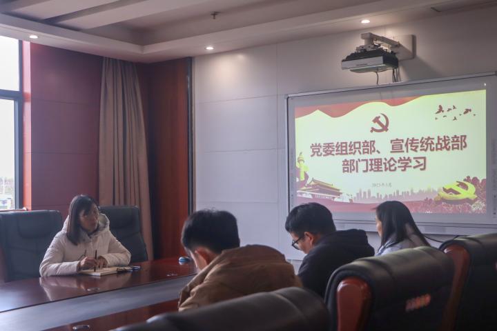 3月24日下午,组织部、宣传统战部在明道楼331室开展政治理论学习。组织部、宣传统战部部长郭侠主持,部门全体成员参加。