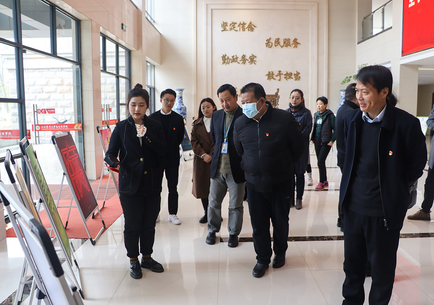在廉政教育展览现场,院党委书记何后军带领全体院领导及部分教师边走边看,边看边交流,一个个触目惊心的警示案例,一幅幅饱含深意的文化作品,发人深省,引人深思。