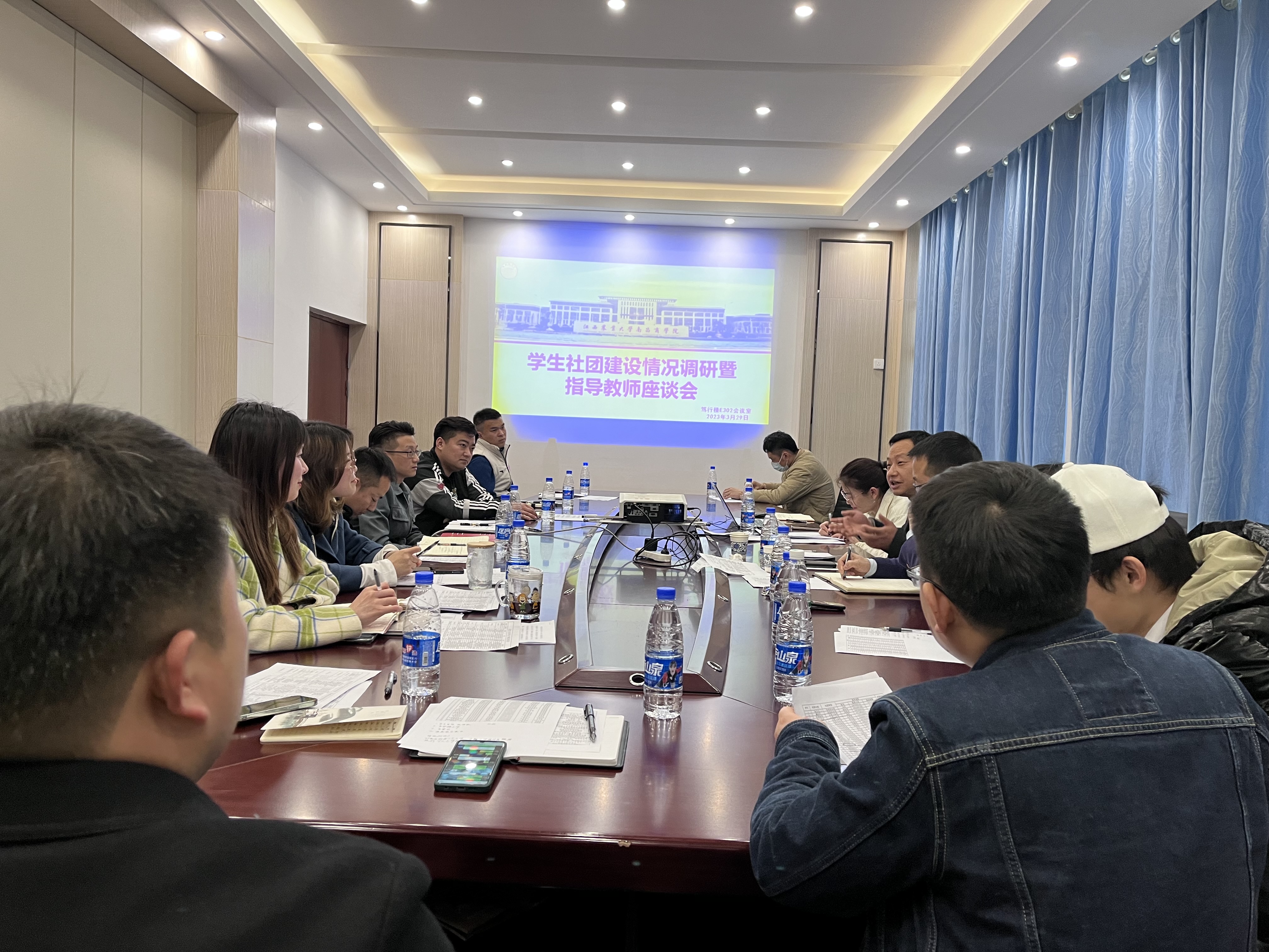 3月29日下午,学院社团指导教师座谈会在笃行楼E302举行,院党委副书记杨欢到场参加,专题调研学生社团建设。党委学生工作部、团委相关负责人和相关社团指导教师一起参加座谈。