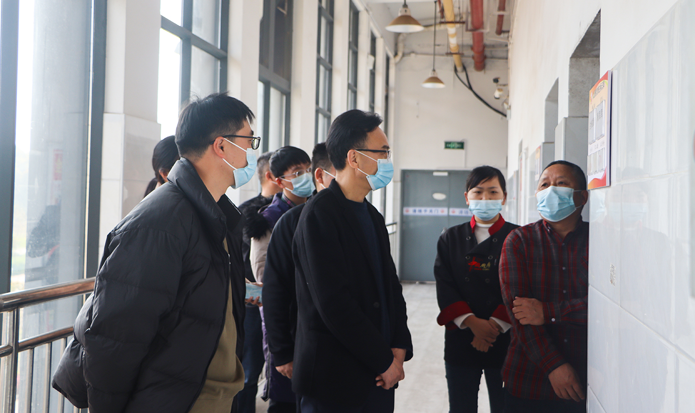 在学院食堂一楼和三楼,胡国良一行深入到食堂餐厅、后厨、库房等地,实地查看了食堂就餐环境、从业人员操作情况,查阅了食堂经费开支、食材验收台账等资料,询问了菜品品类、菜品单价等问题。巡检中,胡国良对食堂日常管理、食品卫生安全、食堂从业人员操作都给予了充分肯定,同时对进一步改进食堂管理,提升服务品质等方面提出了意见和建议。