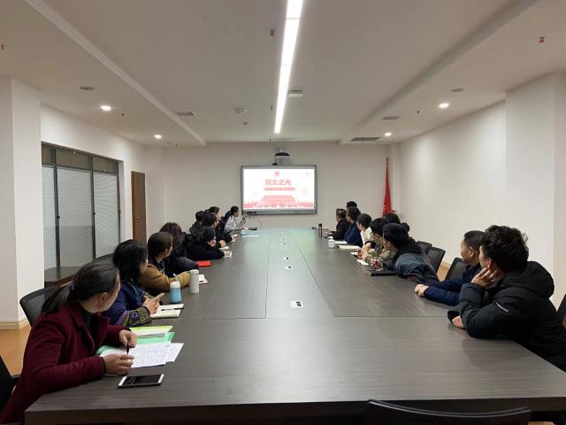 会上,大家一起观看了《民主之光》纪录片,片中讲述了从治理一个县,谋划一个省,到领航一个14亿多人口的大国,不论走到哪里,习近平时刻不忘问需于民、问计于民。
