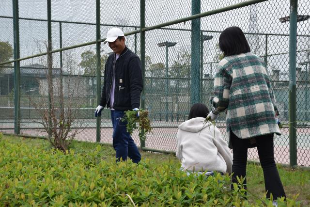 活动中,教工志愿者们分工合作,干劲十足。在大家的共同努力下,网球场周边的杂草和沿线及路旁的垃圾很快被清除干净,校园环境有了明显的改观。