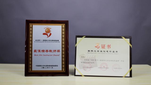 近日,2022第十一届中国国际大学生微电影盛典最佳指导教师奖证书及奖牌寄送到了人文与艺术系广播电视编导专业负责人熊伟的手中,这是我院教师首次获得此类奖项。