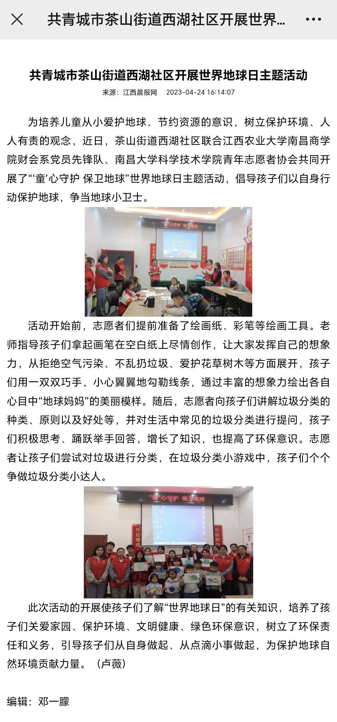 【江西晨报】共青城市茶山街道西湖社区开展世界地球日主题活动