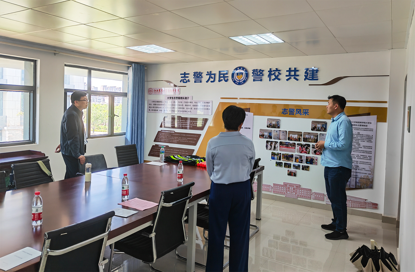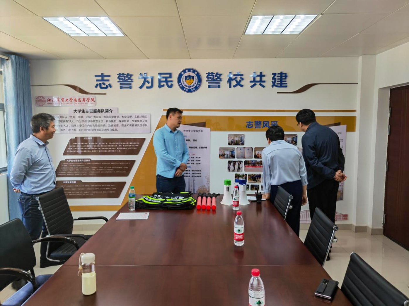 调研过程中,后勤保障处负责人从成立背景、服务特色及未来规划等三方面介绍了学院大学生志警服务队伍建设情况。