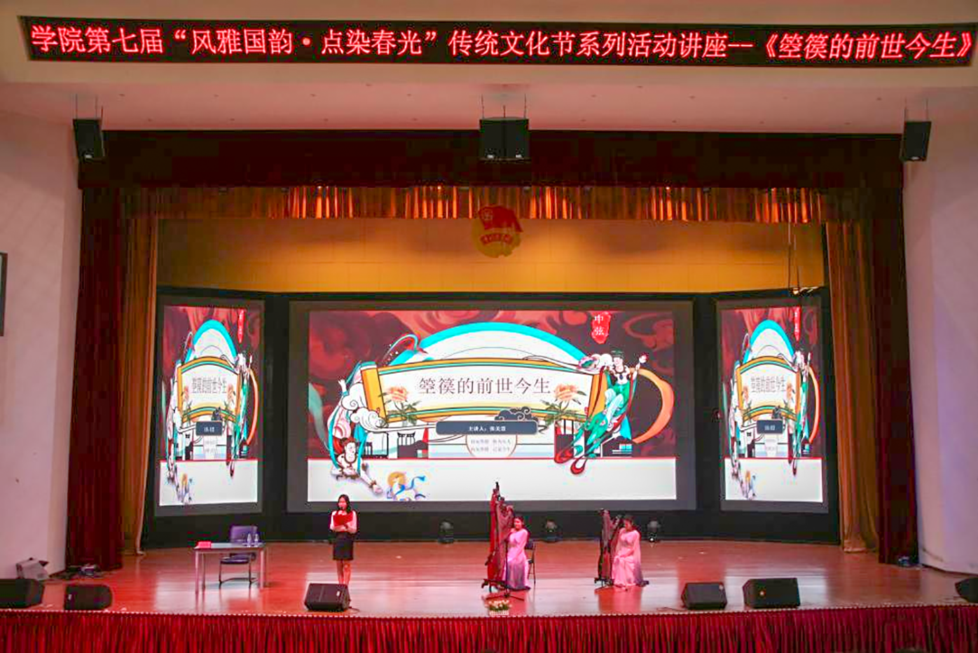 5月10日,学院团委举行传统文化节系列活动讲座“箜篌的前世今生”。讲座邀请江西唯一箜篌非遗传承人张美慧老师主讲,学院团委相关老师和650余名学生代表一起聆听讲座。