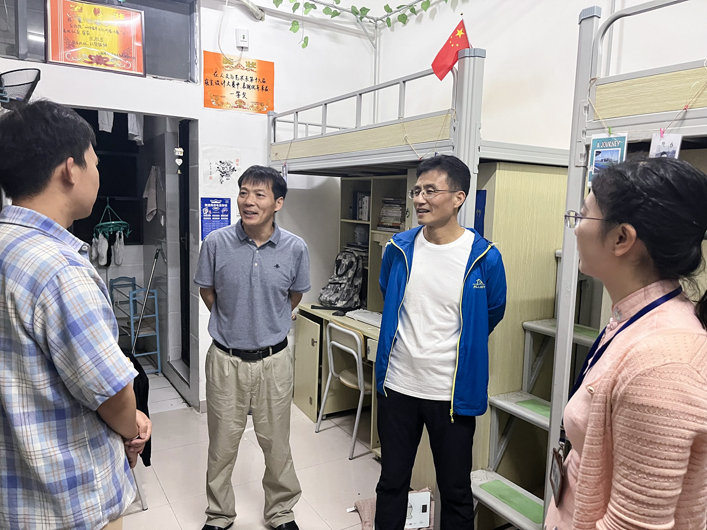 李练军与毕业生们亲切交谈,详细询问他们的生活安排、毕业打算、就业情况等。他勉励大家要以良好的精神风貌与状态迎接毕业季到来,找准目标,结合专业,尽早确立职业规划。同时,他提醒大家注意人身财产安全,用电、用水安全,遵守学院规章制度,做到文明安全离校。