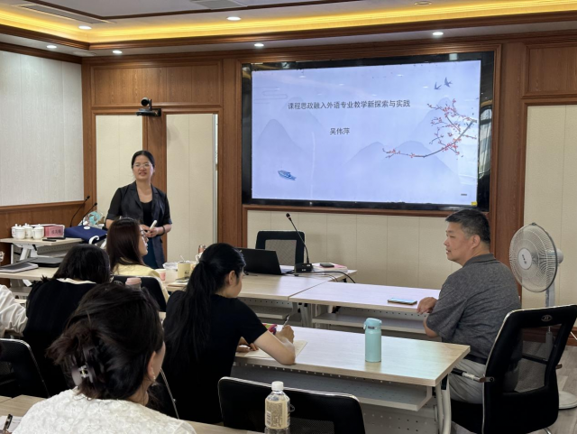为加强外语教师课程思政能力与教学研究能力,5月17日下午,外语系邀请江西农业大学国际交流处处长吴伟萍教授开展“课程思政融入外语专业教学新探索”专题讲座。院党委书记何后军、主题教育读书班相关人员以及外语系全体教师到场聆听。