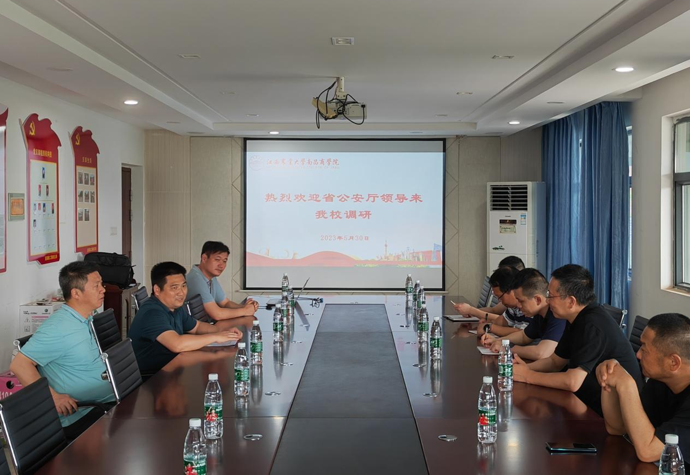 徐发亮对公安厅调研组一行表示欢迎,对共青城市公安局长期以来对学院安全稳定工作的指导和帮助表示感谢。调研座谈会上,双方从校园安全稳定工作内涵建设、大学生志警队伍、警校联动机制及校园安防工作中的焦点及重难点问题进行了分析、交流。