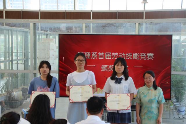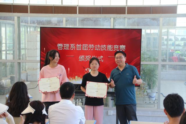 5月31日,管理系在荷塘园景基地举行了管理系首届劳动技能竞赛颁奖仪式,管理系党总支书记杨谨鸿、学工办主任卞芳、聂秋明、乐丽红部分学生到场参加。