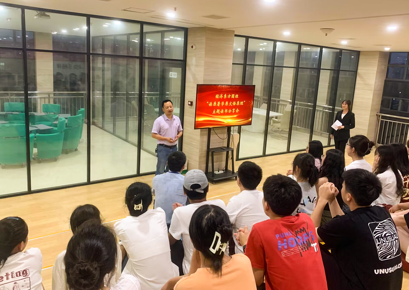 为深入学习贯彻习近平新时代中国特色社会主义思想,6月1日,院党委副书记杨欢参加经济系红色班级“方圆班”读书分享会,与班级同学们一起读原著、学原文、悟原理。经济系党政领导、“方圆班”班主任及班上全体成员共同参加。