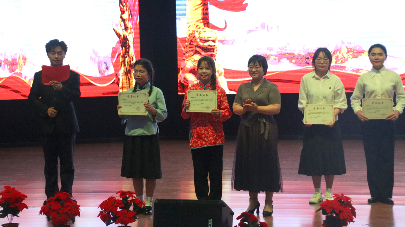 在比赛过程中,八支参赛队伍深情演绎,展示出独特的青春风采,充分展现了农商学子较高的思想政治素养和水平。经过激烈角逐,《青春觉醒》和《请听,他们说……》两组参赛队伍获得一等奖;《错位时空——百年芳华》和《以书信诵先辈荣光》两组参赛队伍获得二等奖;《百年征程》、《瑞金瑞京》、《红岩》和《巾帼力量显担当》四组队伍获得三等奖。