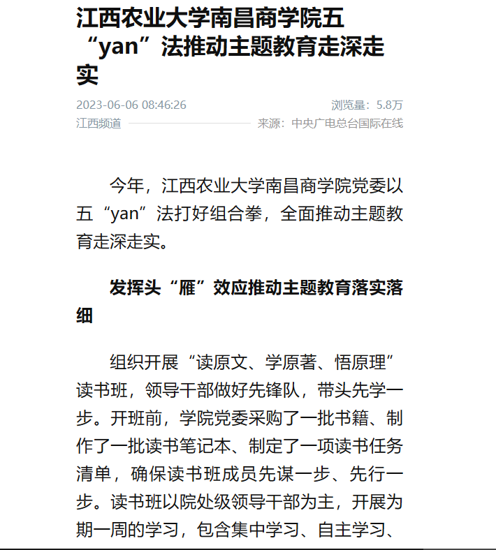 【中国日报】江西农业大学南昌商学院五“yan”法推动主题教育走深走实