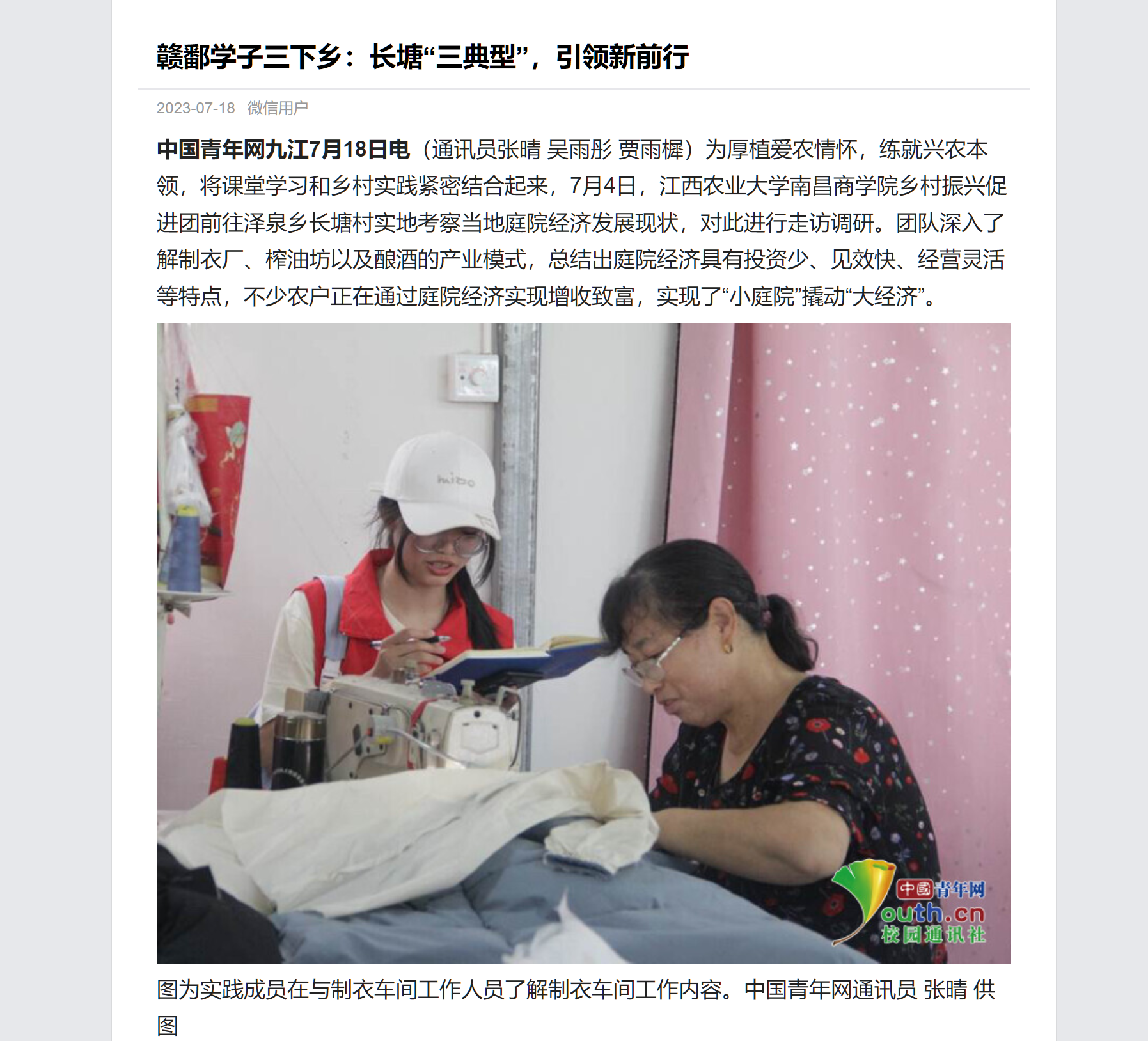 【中国青年网】赣鄱学子三下乡:长塘“三典型”,引领新前行