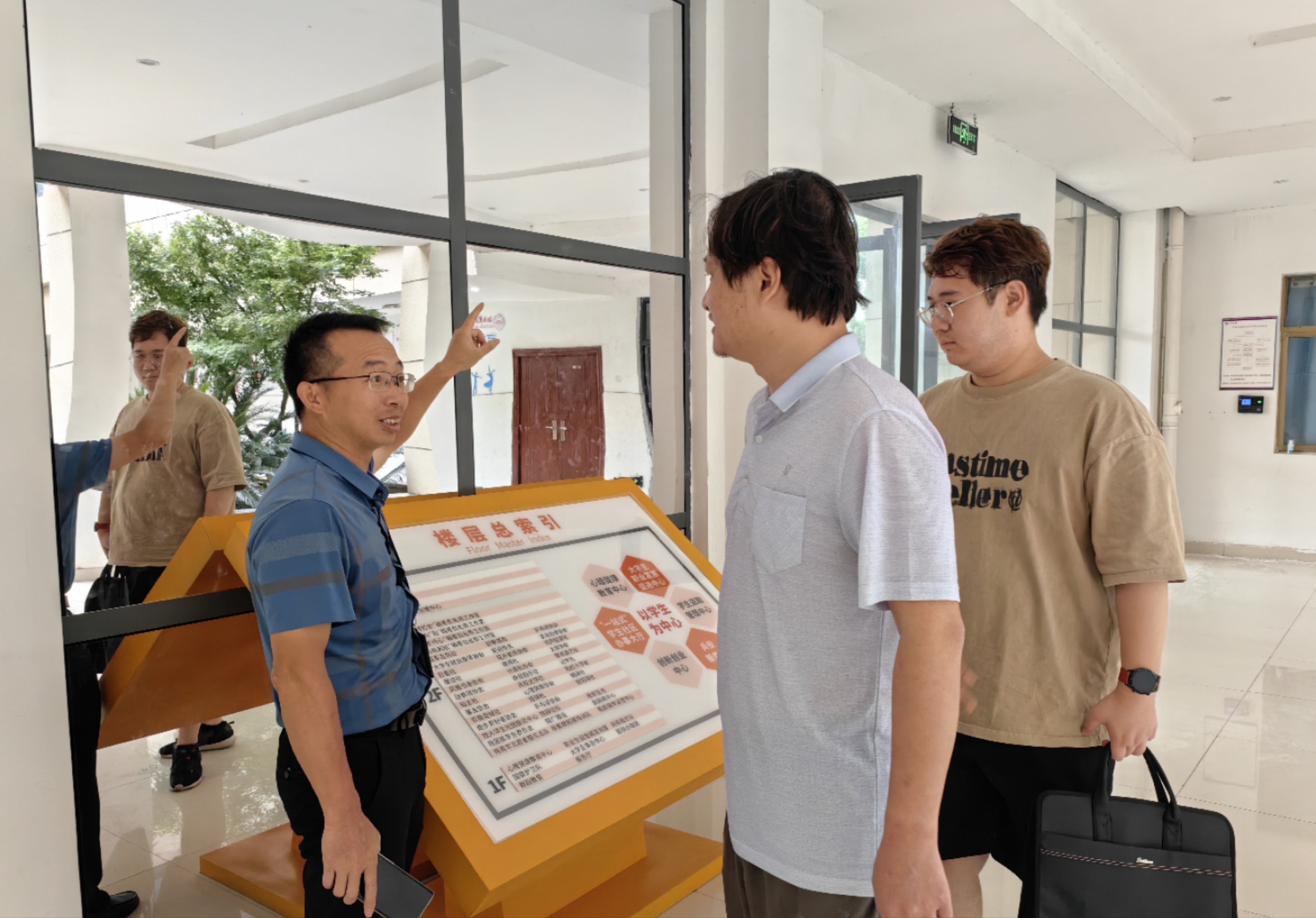 7月22日上午,由南昌师范学院学工处副处长王栋带队的江西省教育厅“一站式”学生社区督导分组来院检查“一站式”学生社区综合管理模式建设情况,学生工作处处长钟根佐等相关老师陪同检查。