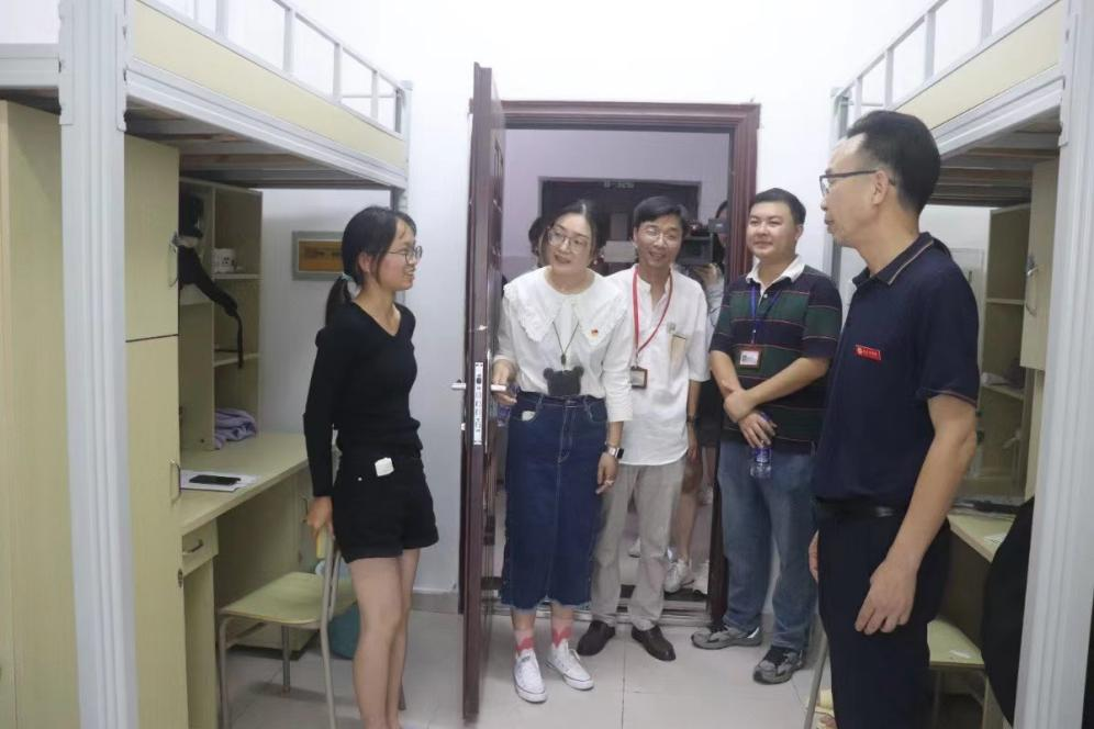 9月10日下午,院长胡国良在外语系党政领导的陪同下,来到新生宿舍,走访看望外语系新生,了解新生思想、生活情况,热情欢迎新同学。
