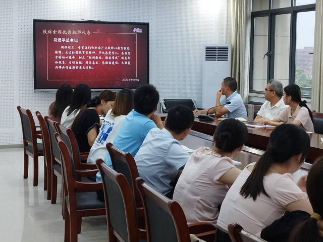 会上,全系教师集中观看学习了《习近平的教师情》专题片。习近平总书记率先垂范、尊师爱师,世代传承的师生情成为推动中国教育砥砺向前的温暖力量。